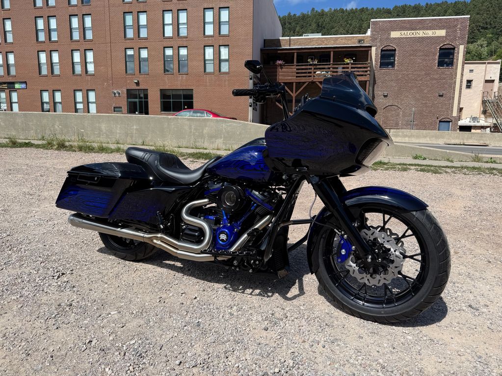 2020 FLTRXS SRT (Steam Roller Touring) we call the "Mule Glide". 128 ci M8 with Dark Horse Crank, Feuling everything and Revolution Performance Big Bore Kit. Bake Grudge Box. Custom Paint & Powder Coating.
